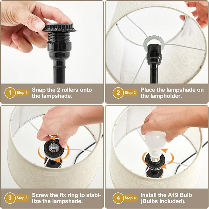• Includes 2 Energy-Efficient LED Bulbs: Your lamp arrives ready to use with two warm white E26 LED bulbs (9W, 3000K), eliminating the need for separate purchases. Designed for eye comfort, they deliver steady, flicker-free light with no harsh glare or humming. These low-wattage bulbs use up to 90% less energy than traditional lighting, helping reduce electricity costs while maintaining a cozy glow.