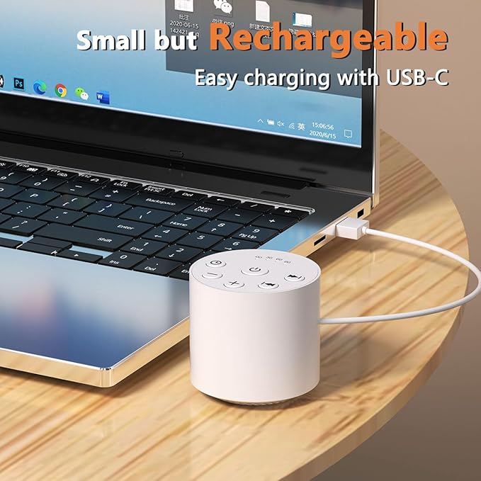 • ❤【Long Battery Life & Portable Design】: With well-designed batter and USB charging cable, you can use this sound machine either plugged in or unplugged. No more power outages to worry about. The hanging rope allows you take it anywhere without being limited by space.
