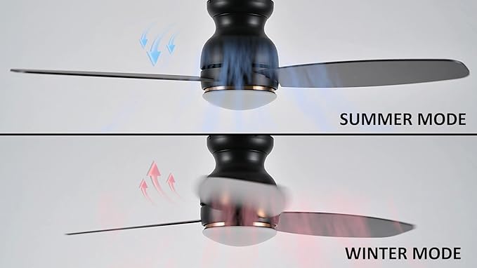 • 【Modern black Ceiling Fan】: Showcasing a black finish and three high-quality plywood blades, this fan spans 44 inches in diameter with an 11.7-inch height from ceiling to bottom. Its flush mount design is ideal for rooms with lower ceilings, providing efficient airflow without occupying excessive space. Perfect for enhancing indoor spaces like the living room, bedroom, home office, or dining area.