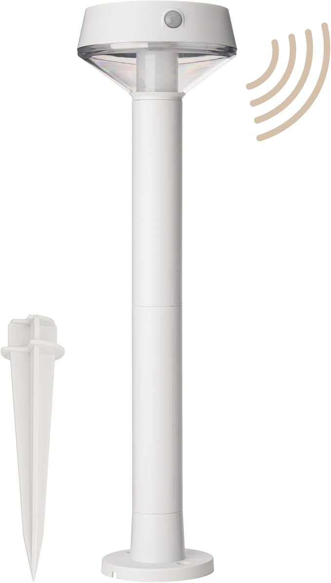 EcoPath Solar Collection LED Landscape Path Light or Fence Post Light with Linkable IR Motion Sensor and Daylight Sensor 80 Lumens 8 Hours on Full Charge 3000K in White