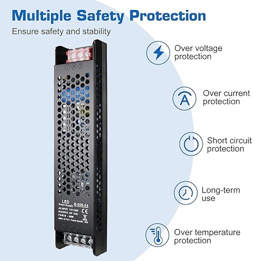 LED Driver 24V 300W 12.5A Slim LED Power Supply, AC 110V to 24V DC Adapter, Constant Voltage LED Transformer for Strip Lights, Bulbs, Garden and Cabinet Lights