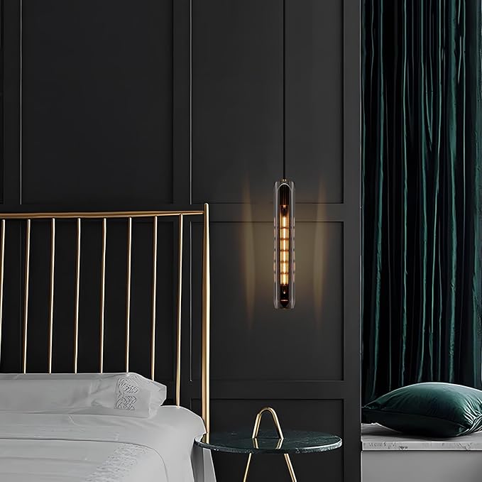 • Adjustable Length & Ideal Dimensions:Modern crystal pendant light come with adjustable suspension wires, allowing you to customize the hanging length to suit your space. long pendant light measures 14.95 inches in length and 2.38 inches in width, making it the perfect size for both small and large spaces. The fixture’s suspension wire is adjustable, with a maximum height of 79 inches, allowing you to customize the hanging length according to your preferences and ceiling height.The crystal pendant lights come with two long E12 bulbs, one of which is a spare, included for your convenience.