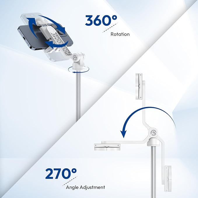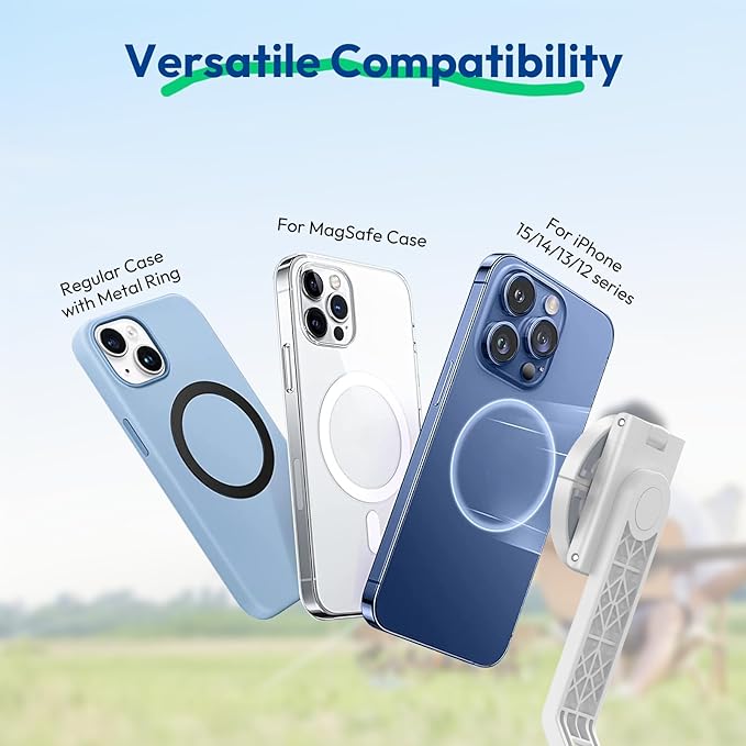 • 【All-in-One Magnetic Universal Design】 Designed with an upgraded integrated structure, this tripod for iphone offers quick magnetic attachment for iPhone 17/16/15/14/13/12 series and MagSafe cases. The adjustable top clip doubles as a universal phone holder, with a 2.2-2.36-inch clamping range, accommodating most non-magnetic smartphones with ease.