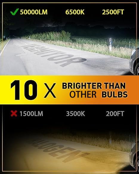 Experience a Blazing 10X Brightness Boost: Enhance your driving journey with our high-power 9007/HB5 fog lights, boasting 24advanced chips per light and an astounding 50,000LM brightness per set. Powered by cutting-edge technology, these lights deliver dependable and efficient illumination, ensuring an optimal nighttime driving experience
