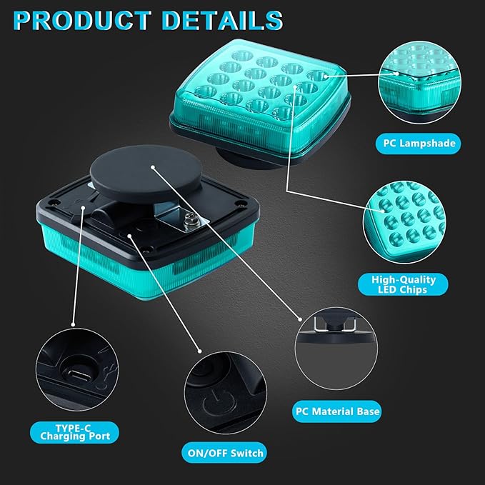 Wireless LED Road Flares for Emergency,Rechargeable Safety Flashing Lights for Vehicles,Portable Strobe Light Magnetic Emergency Strobe Light Kit for Trucks