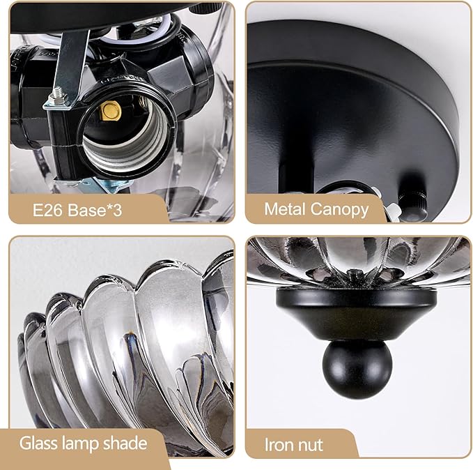 • Elegant Design: This 12" grey glass flush mount chandelier features a modern black ceiling light fixture with a striking semi-flush mount design, perfect for living rooms, hallways, kitchens, and bedrooms.