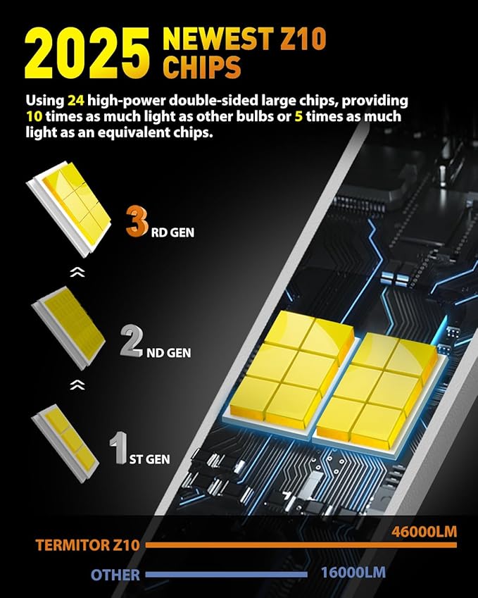 Experience a Blazing 10X Brightness Boost: Enhance your driving journey with our high-power 9008/H13 bulbs, boasting 24advanced chips per light and an astounding 60,000LM brightness per set. Powered by cutting-edge technology, these lights deliver dependable and efficient illumination, ensuring an optimal nighttime driving experience