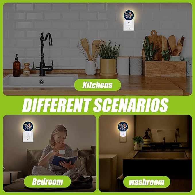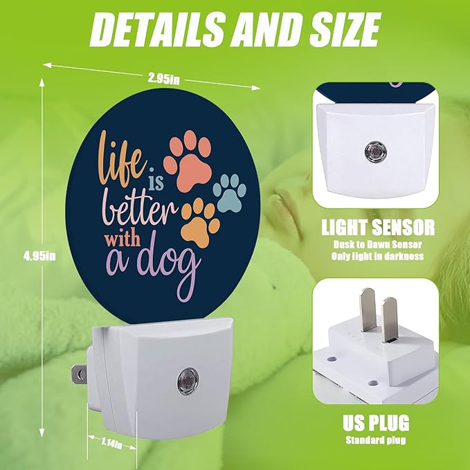 Dog Paw Night Light,Plug-in Night Lights with Dusk-to-Dawn Sensor for Bedroom Bathroom and Living Room Sleep Friendly lamp Life is Better with A Dog