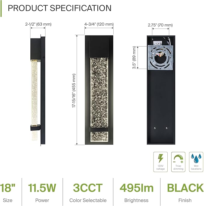• Style : Modern Outdoor Wall Sconce, Contemporary Exterior Lamp, Hardwired Lighting Bar, Flushmount Luminaire