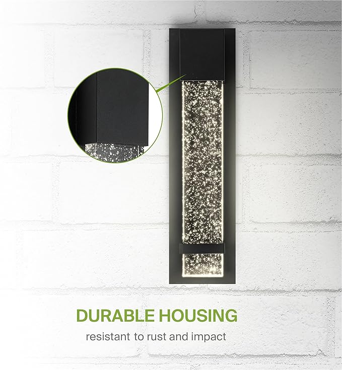 ASD LED 18 Inch Bubble Glass Wall Light Fixture | 12W 500LM 3000-5000K 120V | 3CCT, Waterproof, Dimmable, ETL Listed | Exterior Flush Mount Sconce, Outdoor-Indoor Lighting | Black, 4 Pack