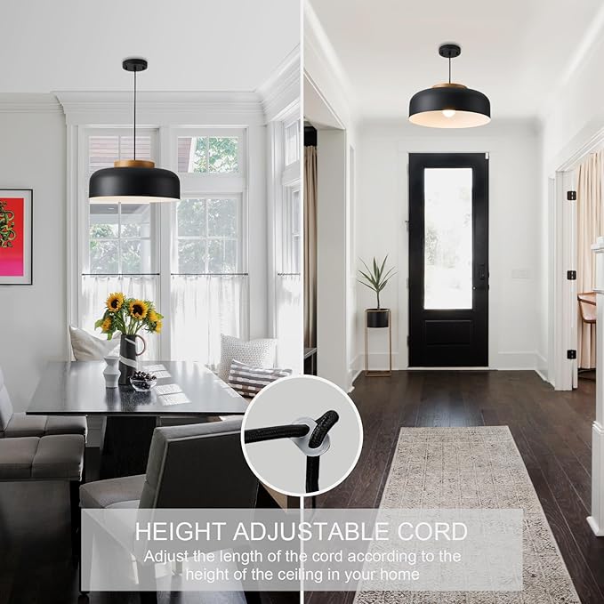 • Organic and Industrial Style: Combines a handcrafted natural wood cap for rustic warmth and a durable matte black metal body, creating a striking visual contrast perfect for modern farmhouse or industrial interiors..