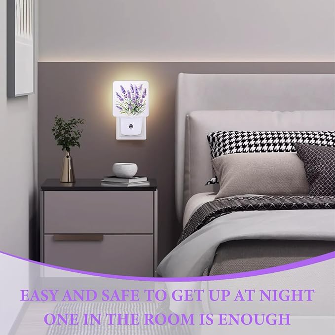 Purple Lavender Night Light,Plug-in Night Lights with Dusk-to-Dawn Sensor for Bedroom,Bathroom and Living Room Sleep Friendly lamp 0.5w