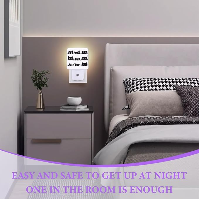 Black Cat Night Light,Cute Cat Plug-in Night Lights with Dusk-to-Dawn Sensor for Bedroom,Bathroom and Living Room Sleep Friendly lamp 0.5w