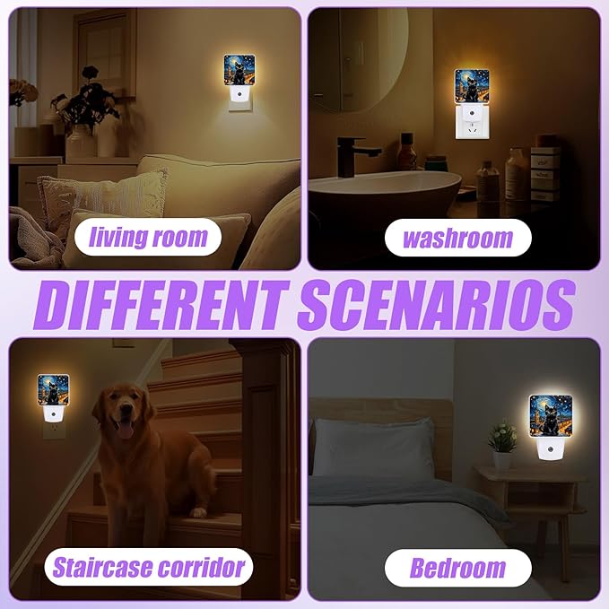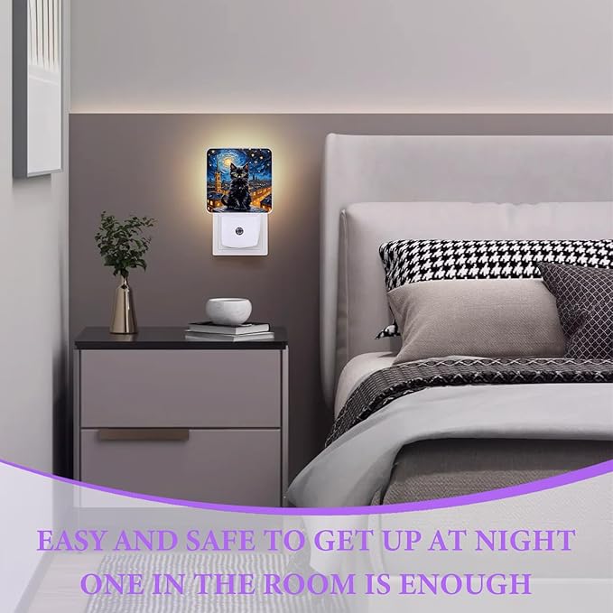 Black Cat Night Light,Starry Night Plug-in NightLights with Dusk-to-Dawn Sensor for Bedroom,Bathroom and Living Room Sleep Friendly lamp 0.5w