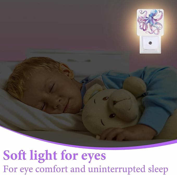 Octopus Night Light,Fish Sea Life Plug-in Night Lights with Dusk-to-Dawn Sensor for Bedroom,Bathroom and Living Room Sleep Friendly lamp 0.5w