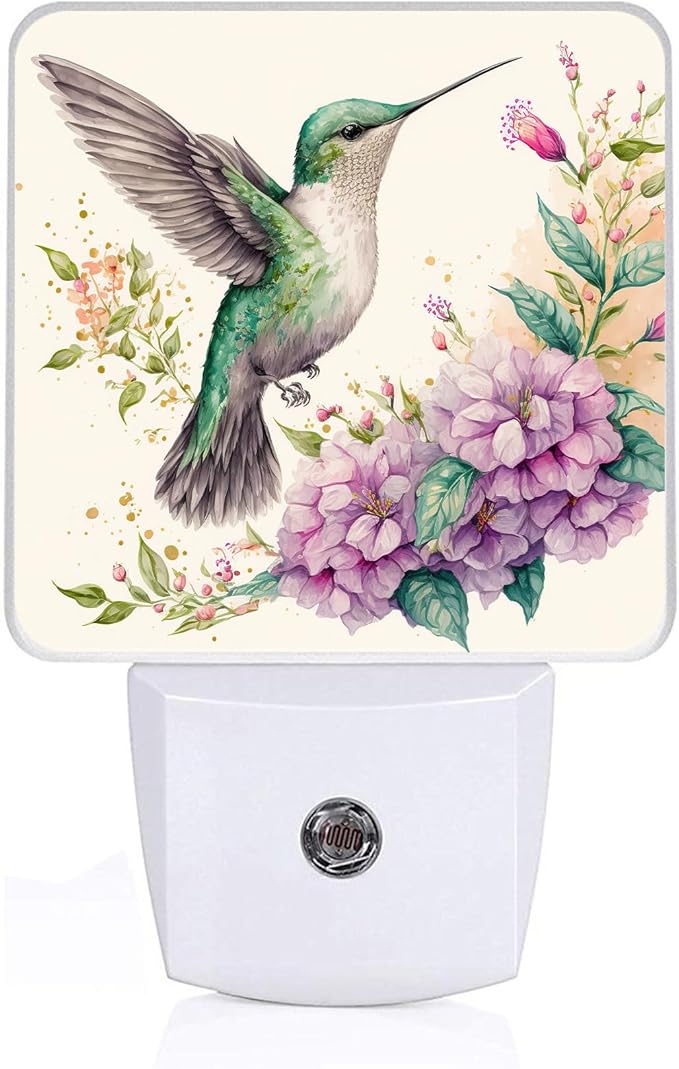 Groovy Hummingbirds Night Light,Flowers Plug-in Night Lights with Dusk-to-Dawn Sensor for Bedroom,Bathroom and Living Room Sleep Friendly lamp 0.5w