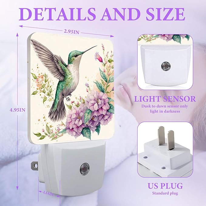 • 【Soft Light】 - This Hummingbirds Night Light Emits A Soft, Warm Glow That Provides Enough Light Without Interrupting Sleep. It Is Perfect For Nurseries, Children'S Rooms And Other Spaces That Need A Little Extra Light At Night, This Plug-In Night Light Is Suitable For Boys And Girls Rooms, Bathrooms, Study, Bedrooms, Kitchens And Living Rooms, Bringing A Fresh Look To Your Home Decor.