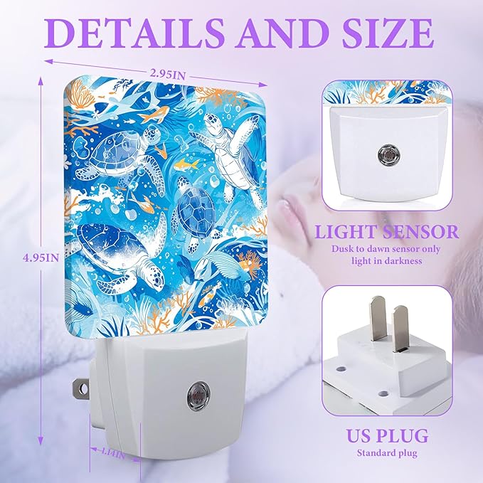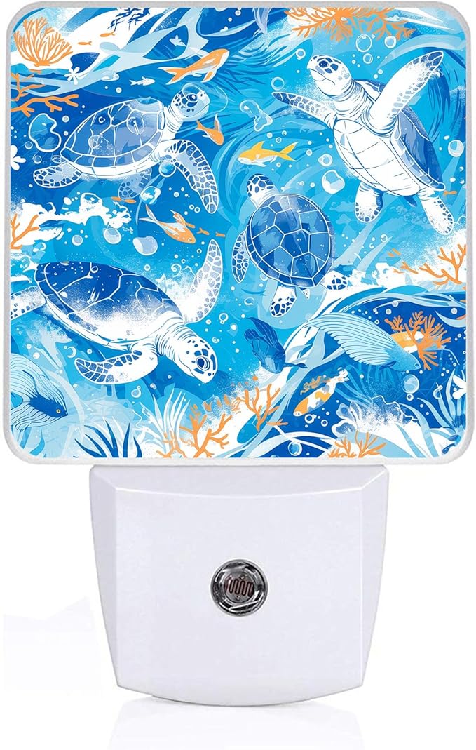 Sea Turtle Night Light,Sea World Plug-in Night Lights with Dusk-to-Dawn Sensor for Bedroom,Bathroom and Living Room Sleep Friendly lamp 0.5w