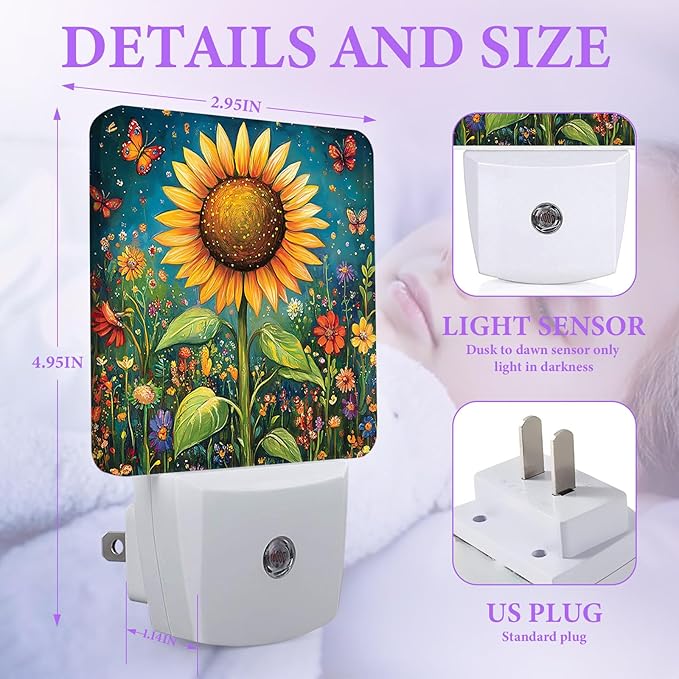Sunflower Night Light,Butterfly Night Lights Plug into Wall,Led Lamp for Stairway/Hallway/Bedroom 0.5W Nightlight Sleep Friendly