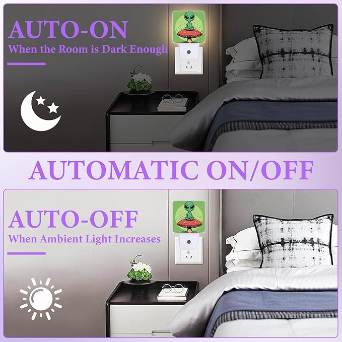 Alien Night Light,Mushroom Plug-in Night Lights with Dusk-to-Dawn Sensor for Bedroom,Bathroom and Living Room Sleep Friendly lamp 0.5w