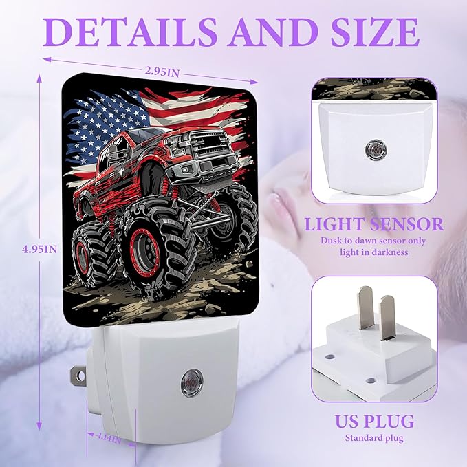 Monster Truck Night Light,Funny Plug-in Night Lights with Dusk-to-Dawn Sensor for Bedroom,Bathroom and Living Room Sleep Friendly lamp 0.5w