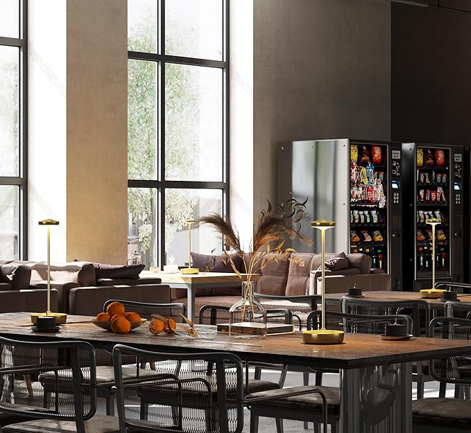 • Stylish & Versatile Design: Sleek modern design enhances any space; durable aluminum alloy body; weighted base with non-slip pads for stability; rechargeable cordless operation for indoor/outdoor flexibility; suits restaurants, cafes, patios, and home decor