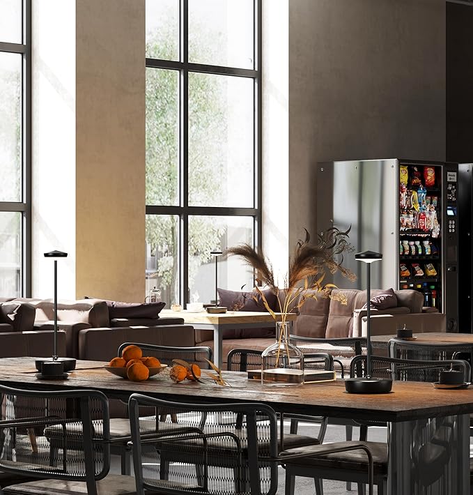 • Stylish & Versatile Design: Sleek modern design enhances any space; durable aluminum alloy body; weighted base with non-slip pads for stability; rechargeable cordless operation for indoor/outdoor flexibility; suits restaurants, cafes, patios, and home decor