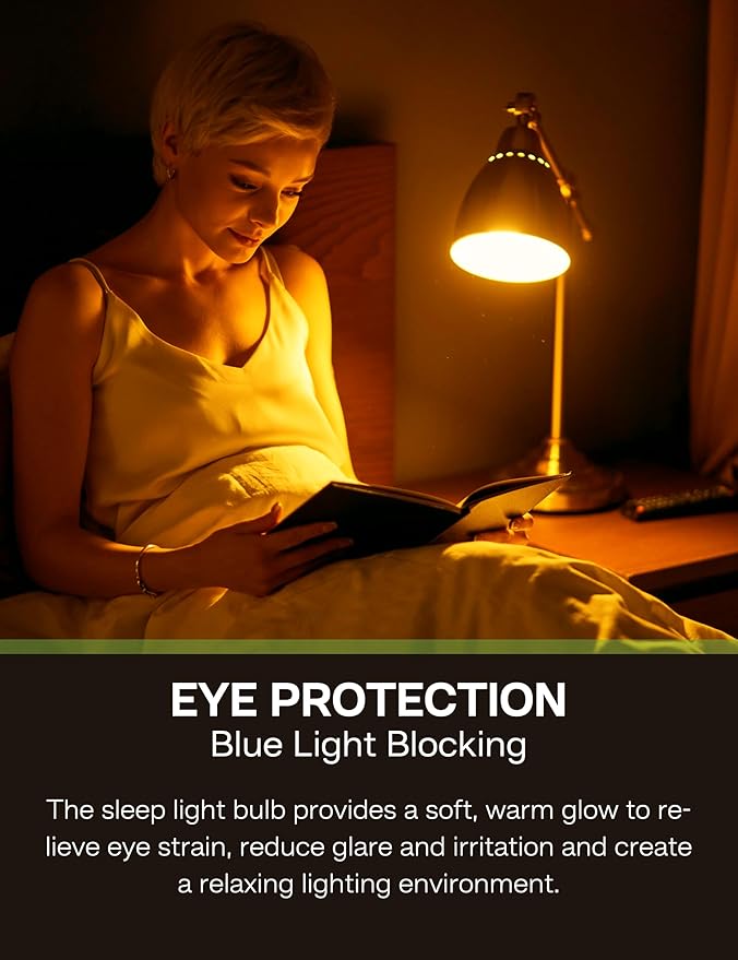 • Low Blue Light: Our sleep light bulb is 99.14% free of blue spectrum light. It promotes melatonin production for a healthy sleep-wake cycle, supports your natural circadian rhythm, and improves overall sleep quality