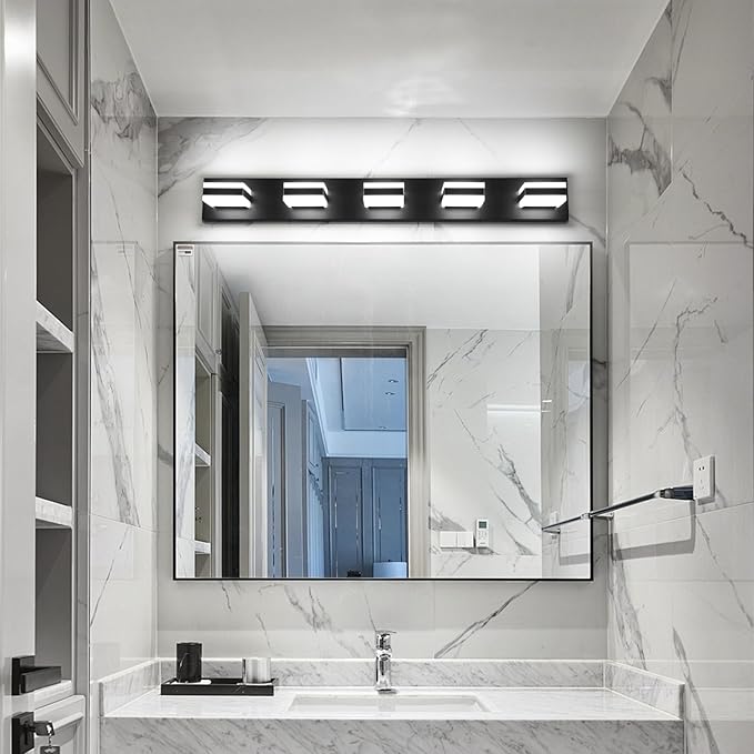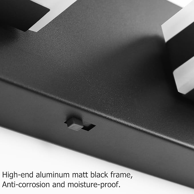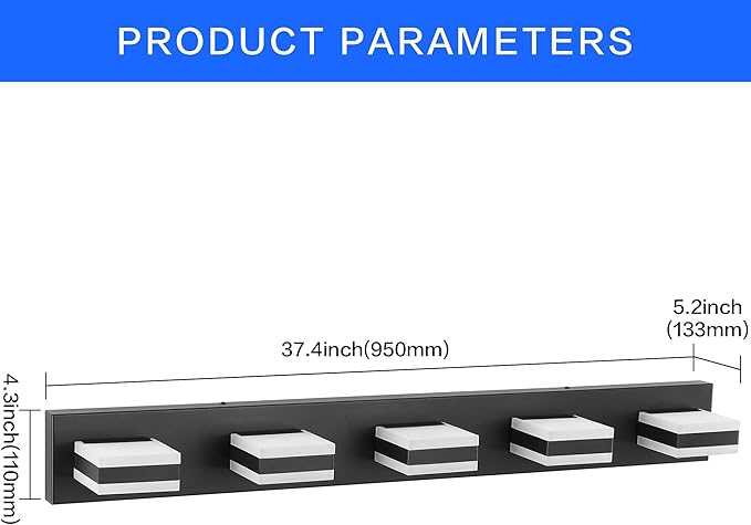 • 4.【ENERGY SAVING】High color rendering 90, LED light technology saves up to 80% electricity. Efficient, minimalist, modern, contemporary black vanity light. Integrally formed, edge lines clearly and smoothly contoured. 40w Cool White 6000K & 0%-100% brightness dimmable 5 light color adjustable.