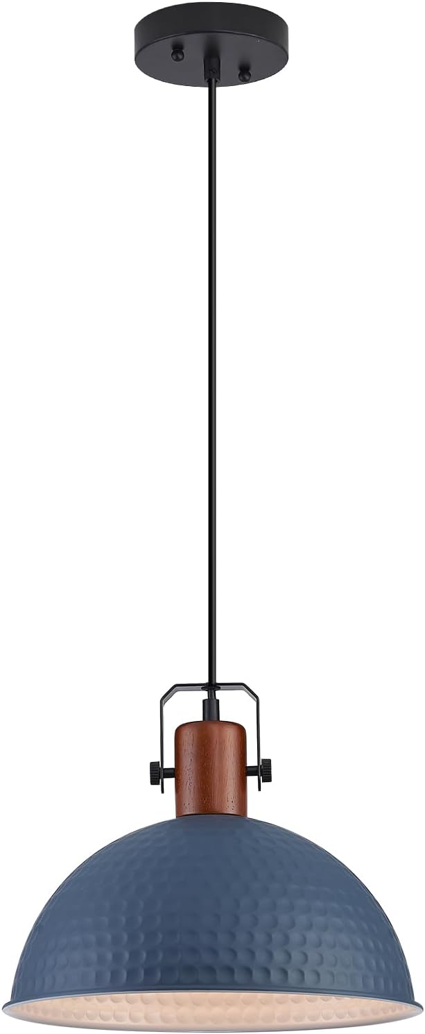 12 Inch Blue Pendant Lights Hammered Matte Pendant Lights for Kitchen Island Industrial Farmhouse Adjustable Height Dome Hanging Light Fixtures for Barn, Dining Room 1 Pack