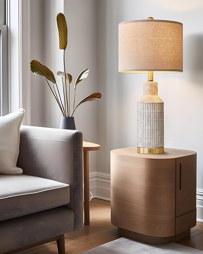 • Modern Style Design: This pair of table lamps designs with a ceramic lamp body and linen fabric lampshade. This lamp not only looks fashionable and stylish, but also creates a modern atmosphere in your home