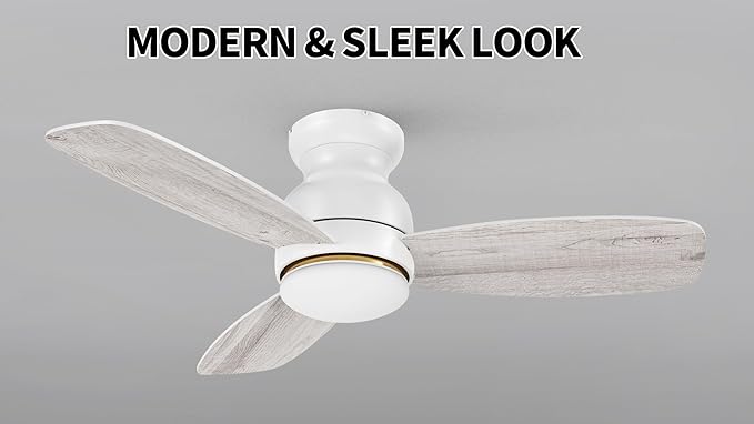 • 【Modern White Ceiling Fan】: Showcasing a white finish and three high-quality plywood blades, this fan spans 44 inches in diameter with an 12.4-inch height from ceiling to bottom. Its flush mount design is ideal for rooms with lower ceilings, providing efficient airflow without occupying excessive space. Perfect for enhancing indoor spaces like the living room, bedroom, home office, or dining area.