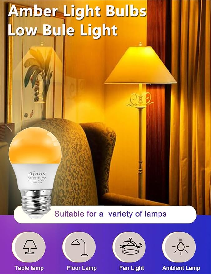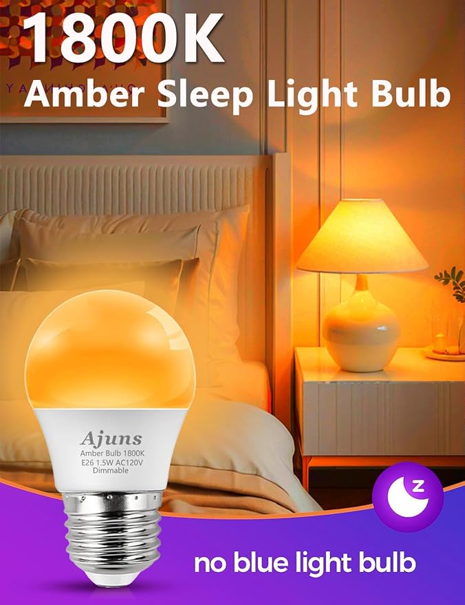 • IMPROVE SLEEP QUALITY: Create a calming atmosphere with Ajuns amber sleep bulbs, ideal for nighttime rest and relaxation. It helps reduce anxiety and promotes restful sleep for both adults and children. Soft 1800K night light for nursery, sleeping, reading or bedtime company without disturbing the natural rhythm.