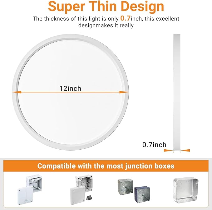 • 【Easy Installation】0.7 inch ultra-thin round led ceiling light can be recessed mounted and surface mounted in any ceiling area, the user-friendly base design can match 99% of junction boxes. There is no need to hire an electrician. We will provide installation instructions and one person can complete the installation in minutes