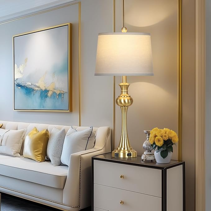 • Brass Table Lamps:Each nightstand lamp contains USB A+C& AC outlets charging port, regardless of whether the lamp is on/off, Bedside lamp is very easy to charge your electric device, such as mobile phone, kindle readers, iPad, iPhone. No need to search around for wall socket to charge anymore.