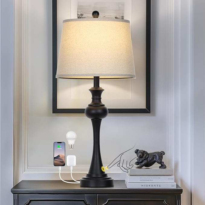 • Convenient USB Charging Port: Each Black table lamp has convenient USB A+C charging port located on the lamp base and works whether the bedroom lamp is on or off. You can charge your mobile phones, tablets, kindle readers, and other electronic devices when you're at work or sleep. Cinyirong bedside lamp add more convenience to your life.