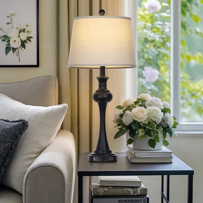 • E26 LED Bulb Included: No need to worry about purchasing separate bulbs for these table lamps for living room. 800 lumens,2700k, with a 25,000 hour lifespan,it will save up to 90% energy. Bedside lamps No flicker and no dazzling, effectively protect your eyes with smooth lighting.