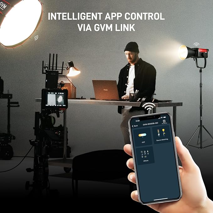 • Dual Control APP & Button control : Seamlessly control your lighting setup with the GVM Link APP via Bluetooth (up to 50m range) or use the button interface for high-precision 16-bit control. Perfect for both solo creators and professional studios.