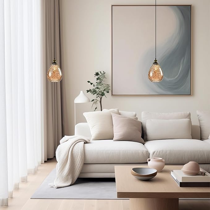 • 【Compact & Elegant for All Interiors】Measuring 8"x9.6", this elongated teardrop silhouette offers height and elegance in a modest footprint. The fully adjustable cord from 15" to 72" ensures it fits perfectly in any ceiling height or layout.