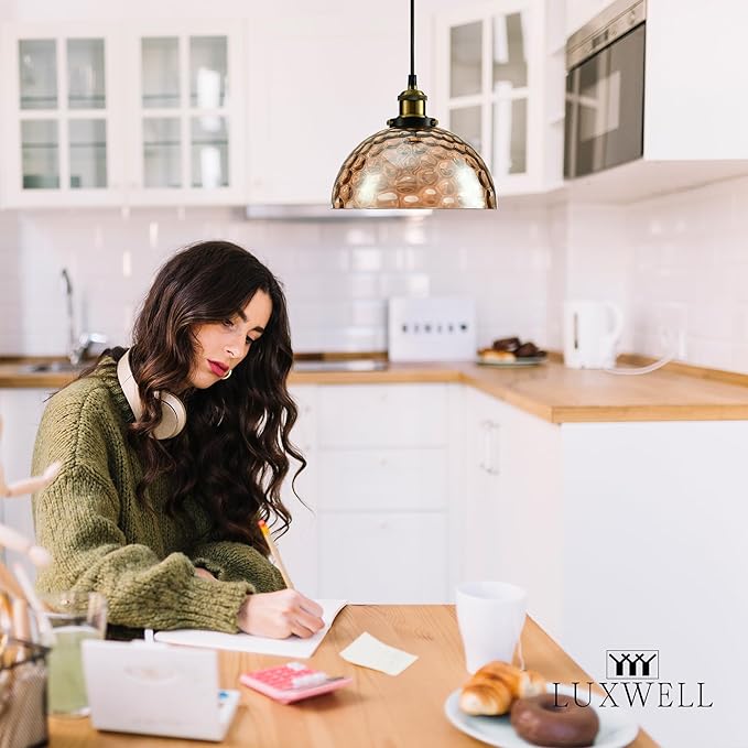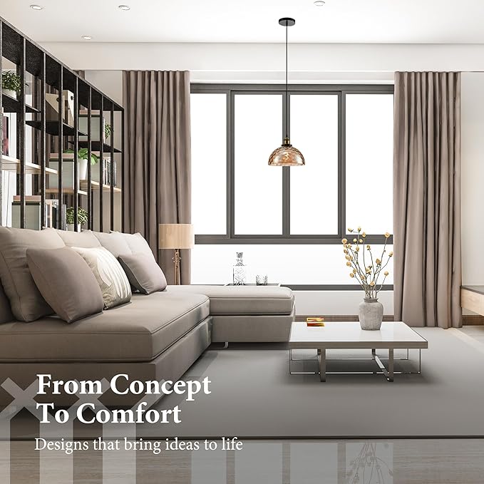 • 【Compact & Elegant for All Interiors】Shaped like an open bell and sized at 9.6"x9.6"x4.8", this pendant casts light both downward and outward for a balanced glow. Easily adjustable drop length (15"–72") suits any ceiling height.