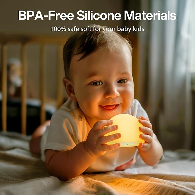 • Cloud Soft and Baby Safe: Crafted from BPA-free, food-grade silicone, this baby night lights for nursery is squishy, safe, and comforting to touch. Whether it’s used during sleep training or simply as a nighttime companion, the soft material is perfect for curious toddlers and gentle enough for newborns. It's totally safe for babies and toddlers to grab, hug, or even toss during play.