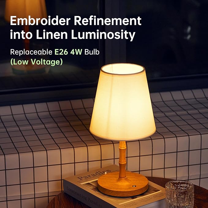 Table Lamp Bedside Desk Lamp,Cordless Rechargeable Battery Operated Lamps for Bedroom Night Stands,3 Colors Touch Dimmable Small Table Kitchen Lamps for Living Room,4000mAh LED (Fabric Shade)