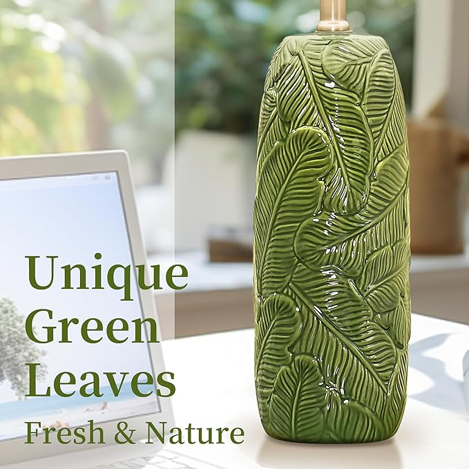 • Green Ceramic Table Lamps Set of 2: Crafted with smooth green ceramic lamp base and white linen shades, this table lamps set of 2 adds a natural touch to your living room, bedroom, or nightstand. The embossed leaves texture creates artistic feeling, while the soft glow enhances relaxation or reading time.