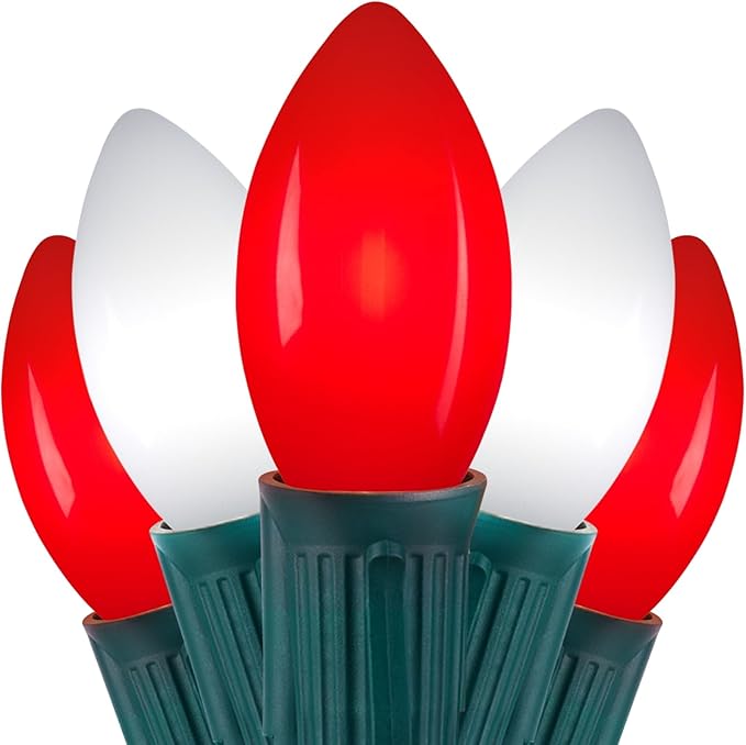 • Extra-Long 100Ft C9 Christmas Lights Outdoor: With a total length of 100 feet and 50 LED shatterproof frosted red and pure white bulbs, these green wire outdoor C9 string lights illuminate larger spaces, creating a rich festive atmosphere