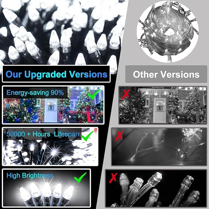 • Durable and reliable, our waterproof Christmas string lights are crafted from high-quality materials and feature advanced LED for enhanced beauty and brightness. Perfect for both indoor and outdoor decorations, they withstand harsh weather conditions like rain or snow. Enjoy a long lifespan and enduring brilliance, making these lights a mainstay of your holiday decor for years to come
