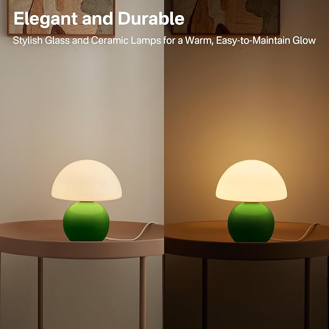 • 【Small Lamp with Wide Application】Not just a decorative mushroom night light, this versatile lamp also serves as a stylish modern glass lamp for sideboards, bedrooms, living rooms, nurseries, dining rooms, coffee shops, bars, and more. It's an excellent gift for holidays, birthdays, Valentine's Day, Christmas, and Thanksgiving.