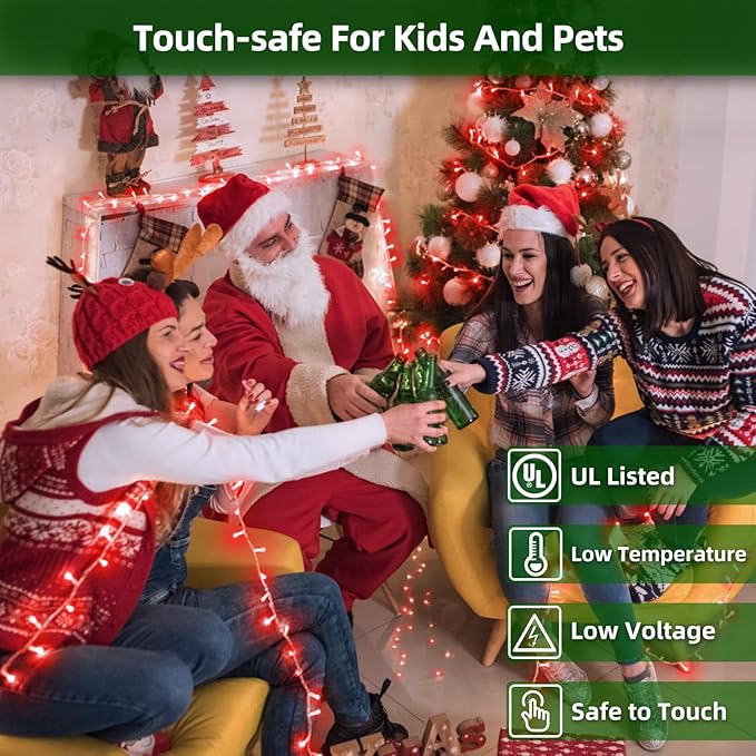 • Built for Families & Energy Savings: Many parents worry about kids or pets touching led string lights. That’s why our UL-certified low-voltage LEDs stay cool, even after hours of use. Safe for indoor trees, mantels, or kids’ bedrooms. Plus, the lights use 90% less energy than traditional bulbs—keeping your electric bill low while still giving you the brightest display in the neighborhood