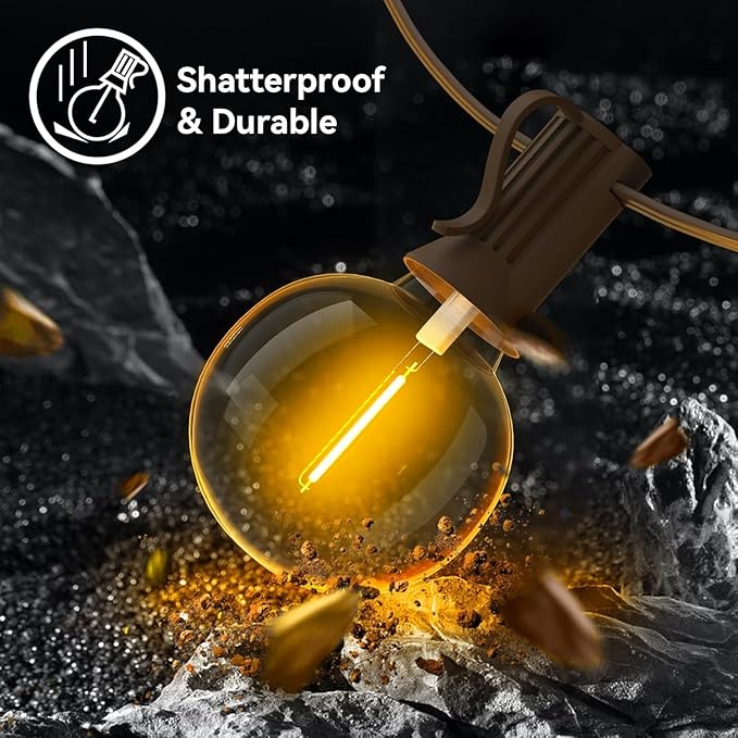 • 【Connectable and Dimmable for Customized Lighting】You can adjust the brightness of our patio lights with a dimmer (not included) to create the perfect mood for any occasion. You can also connect more strings together to cover a larger area or create a stunning display. Even if some bulbs are broken or removed, the rest of the bulbs will stay lit and bright.