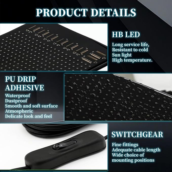 • 4.Durable & All-Weather Ready:Built with military-grade polymer and shatterproof LEDs, these panels survive -22°F to 185°F. Charge via car outlet, power bank, or laptop—no voltage worries. for trucks, SUVs, food trucks, and wedding decor