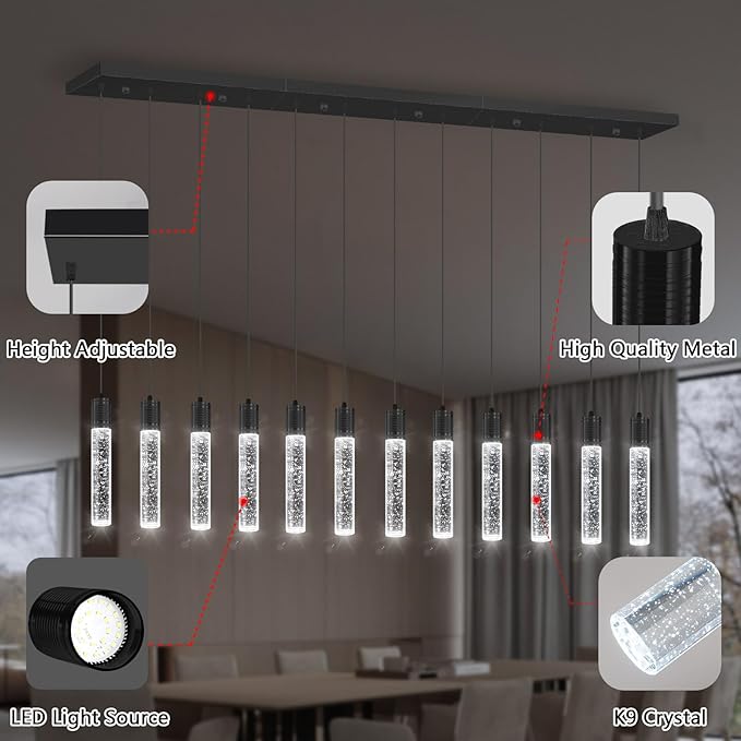 • 【K9 bubble crystal pendants】High quality aluminum lampshade with black finished round base. Provide bright lighting and modern design looking for your kitchen, island, dining room, bedroom, hallway, bar, over dining table